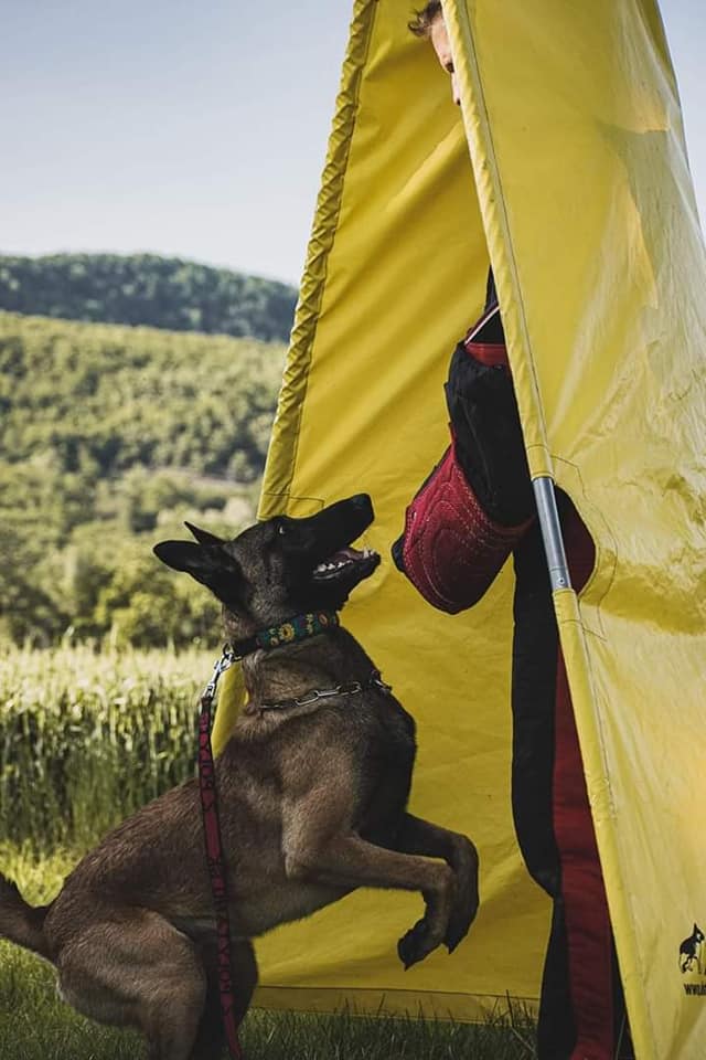 V rámci prípravy na výstavu sme trénovali celkovo s tromi psíkmi - našou Bellou - belgický ovčiak malinois (na fotke), Riley - holanský ovčiak a Brixi - americký buldog.