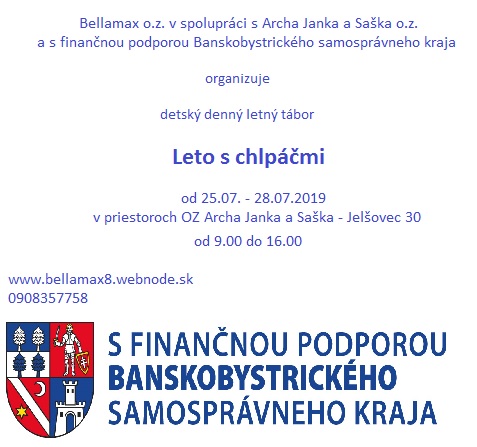 Naše občianske združenie v spolupráci s OZ Archa Janka a Saška a s finančnou podporou Banskobystrického samosprávneho kraja organizuje letný detský denný tábor Leto s chlpáčmi v termíne od 25.07. do 28.07. v Jelšovci, kde deti oboznámime so psími športami, ako napr. obedience, nosework, agility, športová kynológia a iné v podobe ukážok výcviku v...